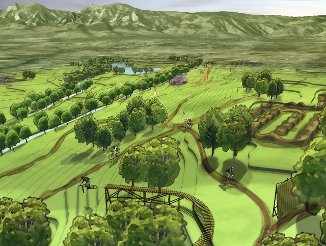The master plan calls for the construction of two pump tracks, dirt jumps, a jump bag (an inflatable landing for learning tricks) and four downhill flow trails. A magic carpet—a low-profile lift that resembles a moving walkway at the airport—will ferry riders 400 vertical feet to the top of the hill. The size and features provide an intermediate-level venue between a compact municipal pump track and the lift-serviced technical riding in the Sierras.