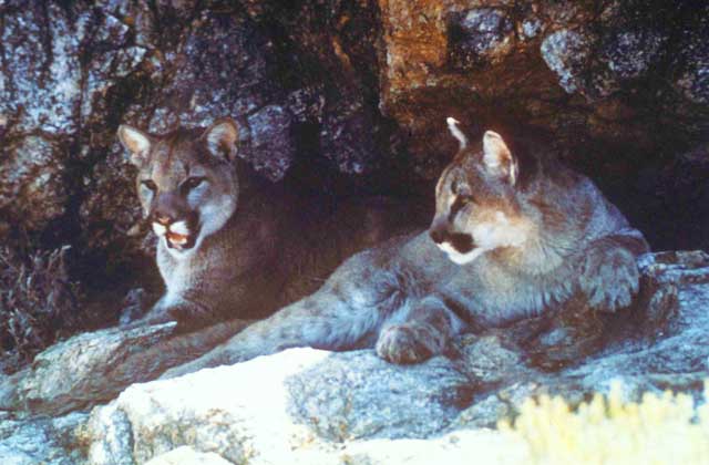 When female pumas enter estrus, they "vocalize freely" (read: "yowl") and rub up against things until the male whose territory overlaps her own comes sniffing around. Copulation is brief, lasting less than a minute, but may happen up to 9 times per hour. So that sounds annoying as hell. Watch this video of two mountain lions caught mating in the Santa Cruz Mountains.