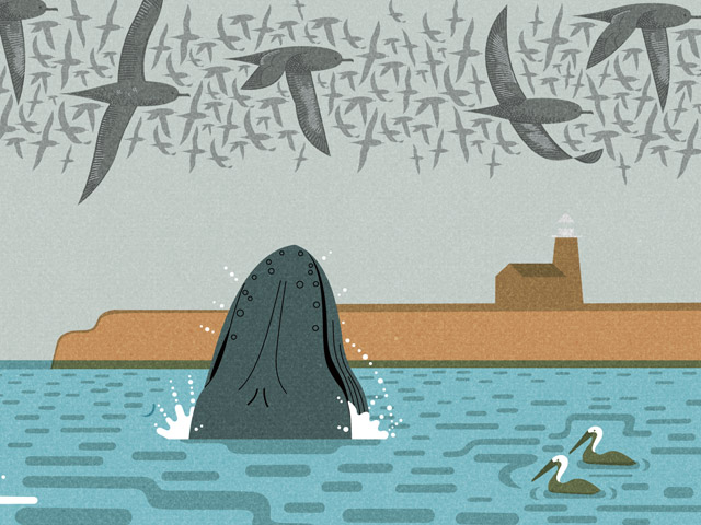 All of them are following migratory paths that bring them here each year, while harbor seals, sea lions, and otters are permanent residents. It’s a lot to keep track of, but the beautifully informative Seasons in Sanctuary poster, commonly seen around Santa Cruz, keeps track of all the ocean-dwellers, marking their arrival and departure times.