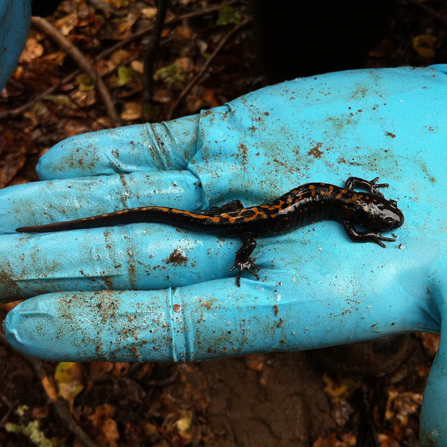 By the time the tubs were rigged, the team needed to act swiftly. Staff and volunteers returned to ponds, nets in hand, to rescue larvae. To stop larger salamanders from cannibalizing their slighter kin in the tubs, the team spent time measuring each salamander and sorting them by size.