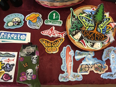 Pictured: stickers, pins and patches by Tim Ward. Photo courtesy Miller Maxfield.