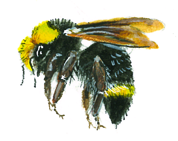 Maryjo Koch illustration of Bombus vosnesenskii (yellow-faced bumblebee)