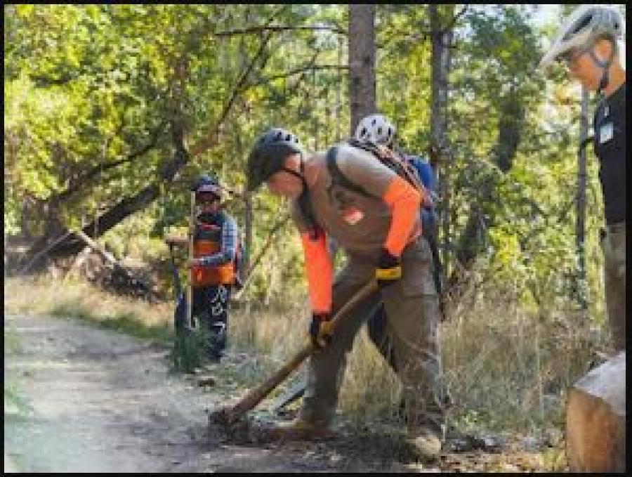 At Demo Days events, we kick off the day with an intro circle and safety talk before carpooling or riding ~2 miles to the worksite where we will regroup. We will spend the day doing a variety of tasks, which may include clearing drains, repairing berms and tread, brushing, installing pavers, and more. Be prepared for 60-90 minutes of strenuous hiking on steep or loose terrain during the work day. Click here for event details.