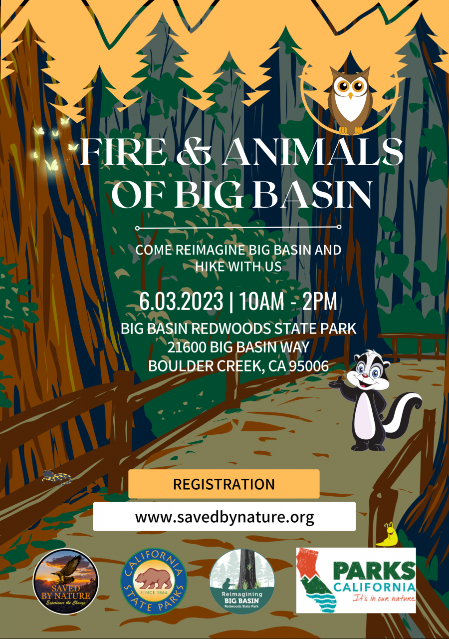 Come learn about the secrets of old growth redwoods, their relationship with fire and the wildlife that depend on the forest to thrive. The Saved By Nature, in partnership with Parks California and California State Parks will discuss the planning process and reimagining of California’s first State and National Park - Big Basin Redwoods State Park. This hike is not recommended for seniors. The adapted Seniors Hike for Health Big Basin event is on June 20th. Click here for event details.