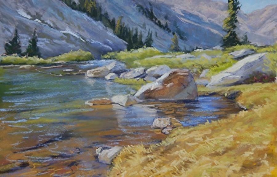 Lake Ashley Outflow by Erika Perloff, pastel on paper, 9" x 14"