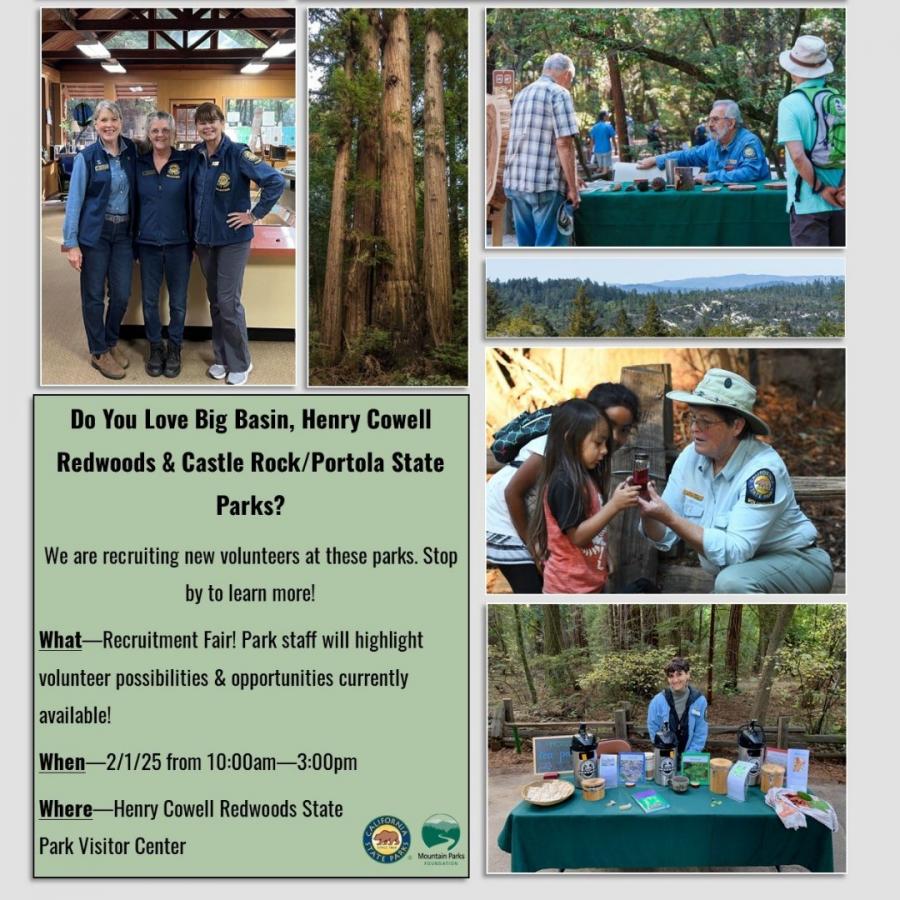 What - A “job fair” style open house highlighting the long-term volunteer programs and possibilities in Henry Cowell Redwoods, Big Basin, Portola, and Castle Rock State Parks.