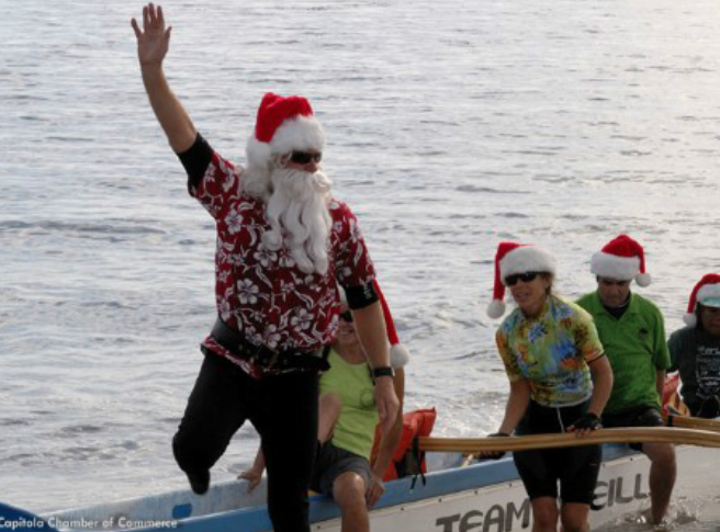 Santa's getting in some R&R before the season gets too crazy, so welcome him ashore this afternoon at the Capitola Esplanade. He'll arrive by outrigger canoe and surfboard at noon, then settle into his beach chair for a visit with the small fry.